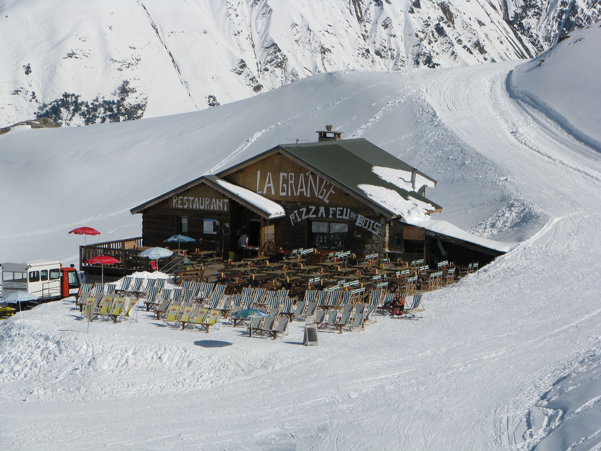 La Grange, restaurant d’altitude emblématique sur les pistes de l’Alpe d’Huez, apprécié pour sa terrasse ensoleillée et sa cuisine montagnarde.